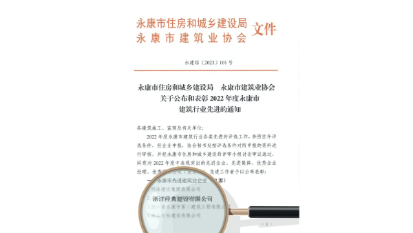 喜報(bào)!經(jīng)典建設(shè)榮獲“2022年度永康市先進(jìn)建筑業(yè)企業(yè)”多項(xiàng)榮譽(yù)