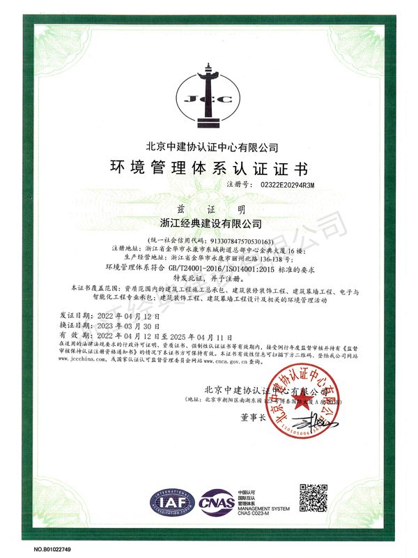 環(huán)境管理體系認證證書...